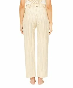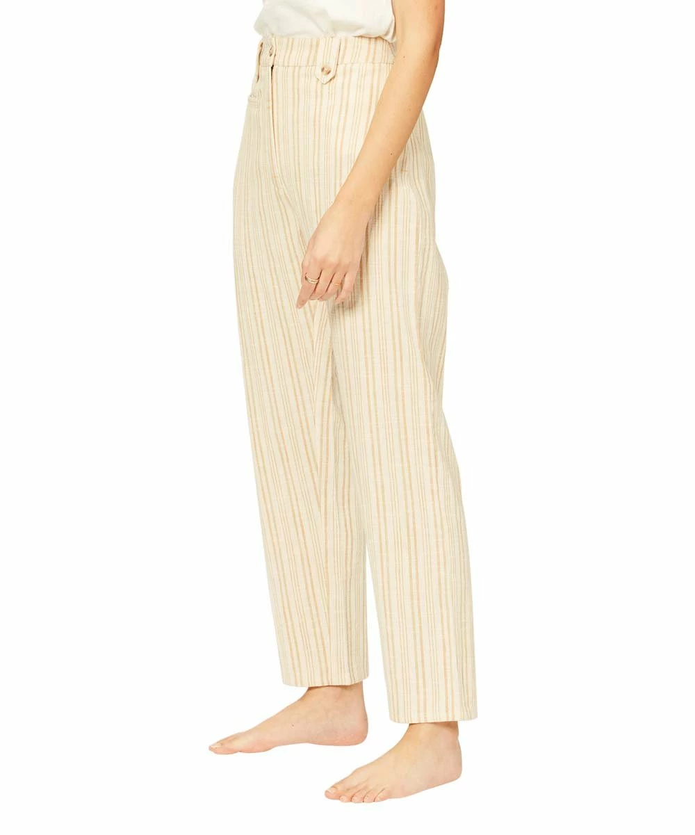 Give your wardrobe an instant refresh with these high-waist pants designed with a subtle stripe print and playful button-down belt loops.