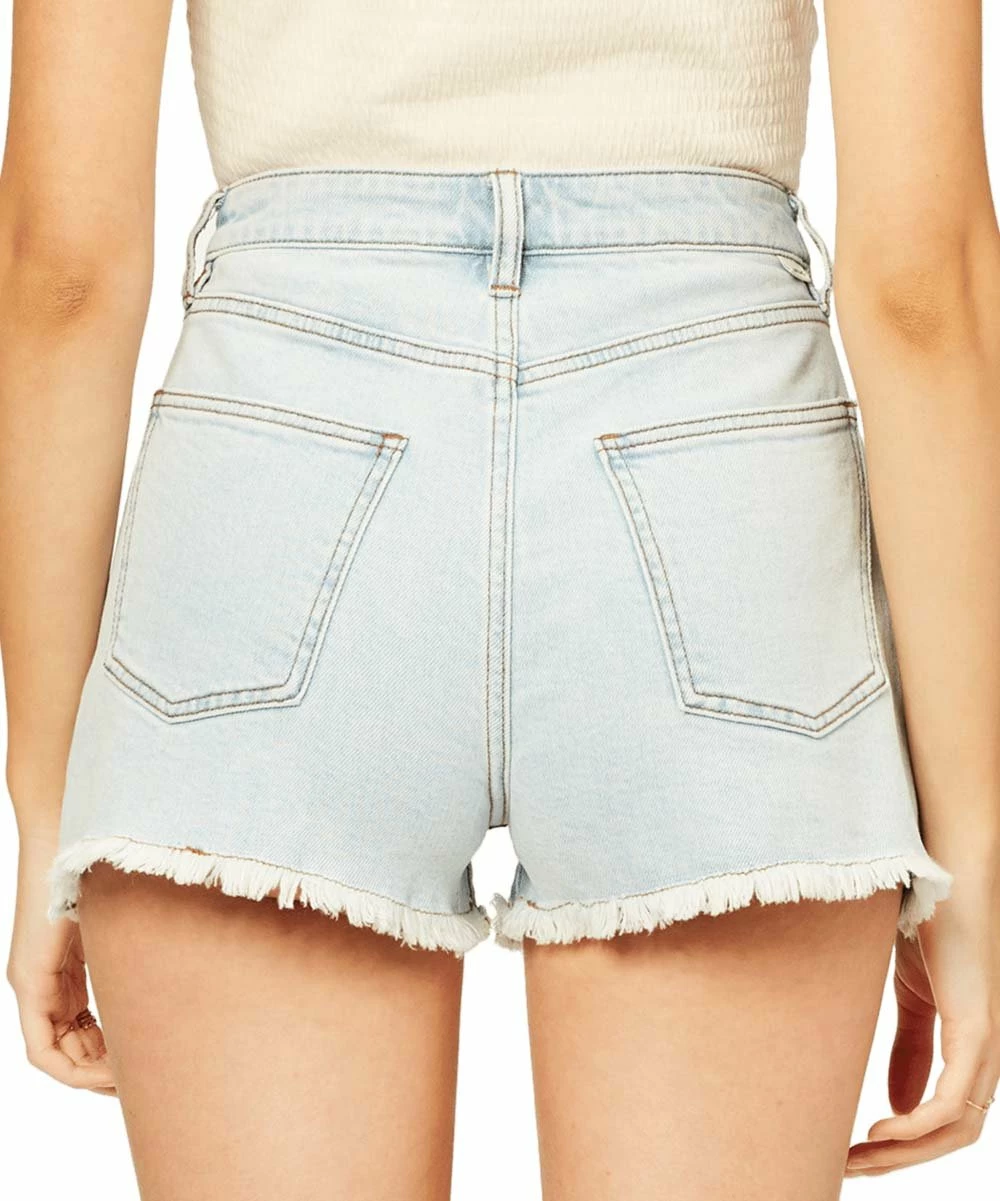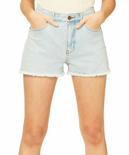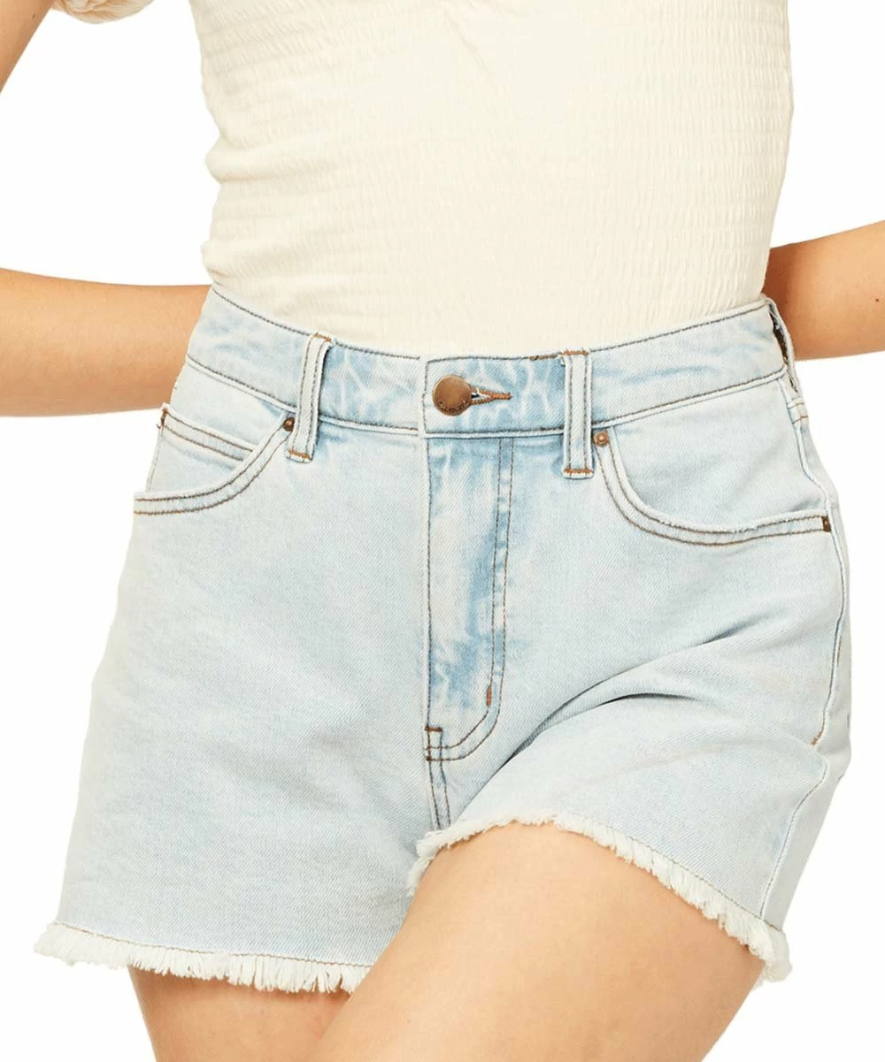 Show off your sunny-day style in these high-waist denim shorts featuring a trendy raw hem and cool cotton-blend fabric.
