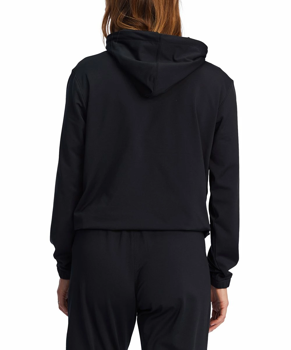 Keep cozy and stylish with this versatile hoodie that features moisture-wicking fabric and an elastic waist.