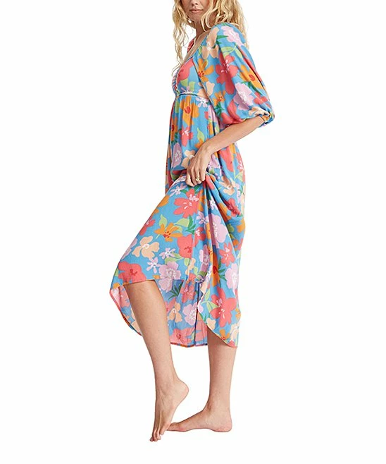 Boho appeal abounds with this midi dress fashioned with puff sleeves and a sweetheart neckline.