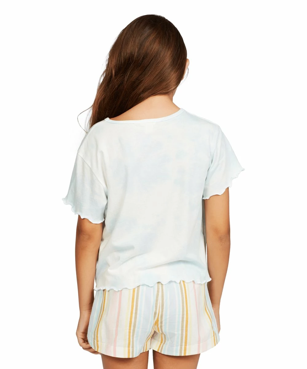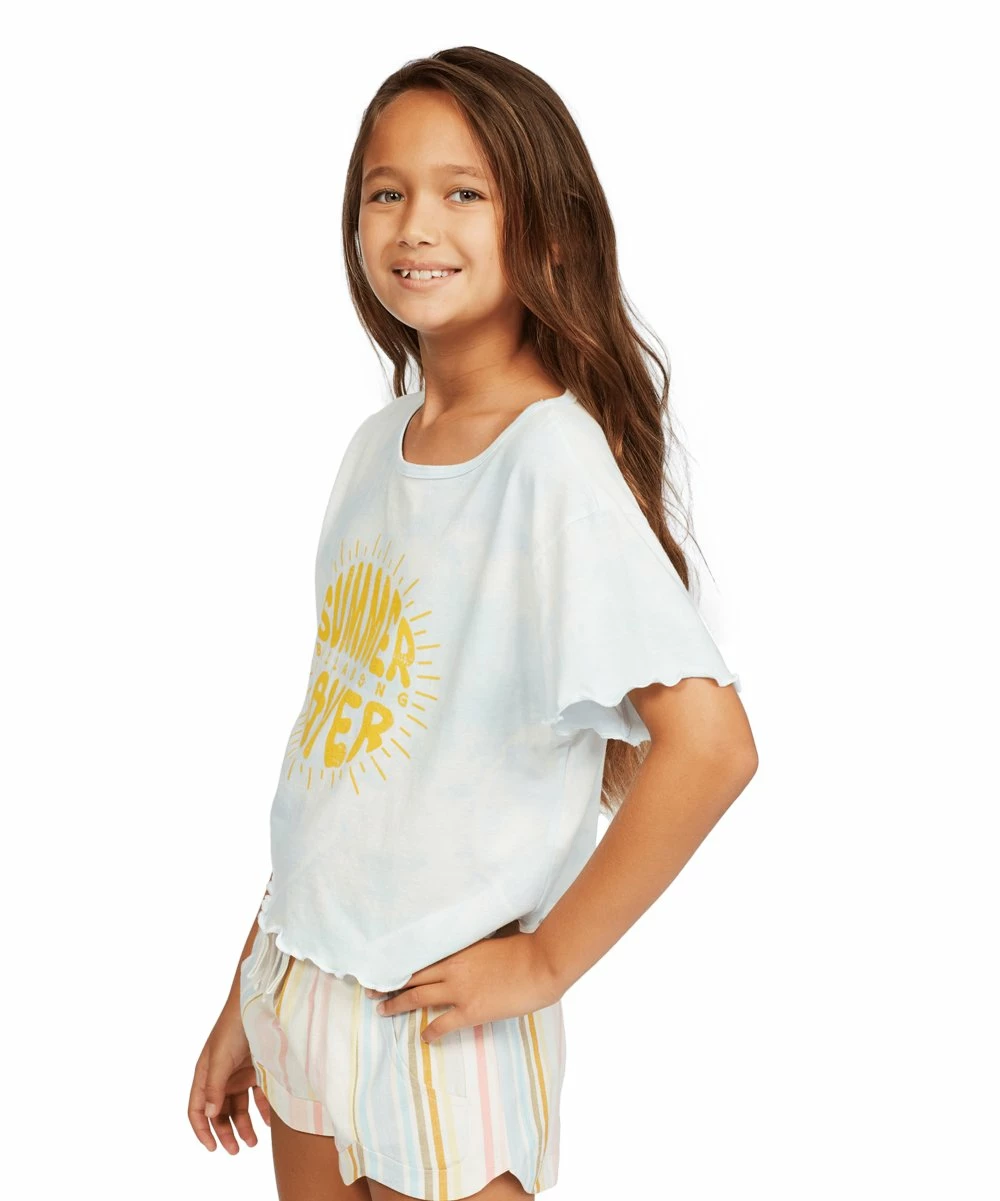 This sweet top features beachy style with its ruffled sleeves, relaxed fit and sunny graphic. It’s made with a supersoft fabric for vacation-ready style.