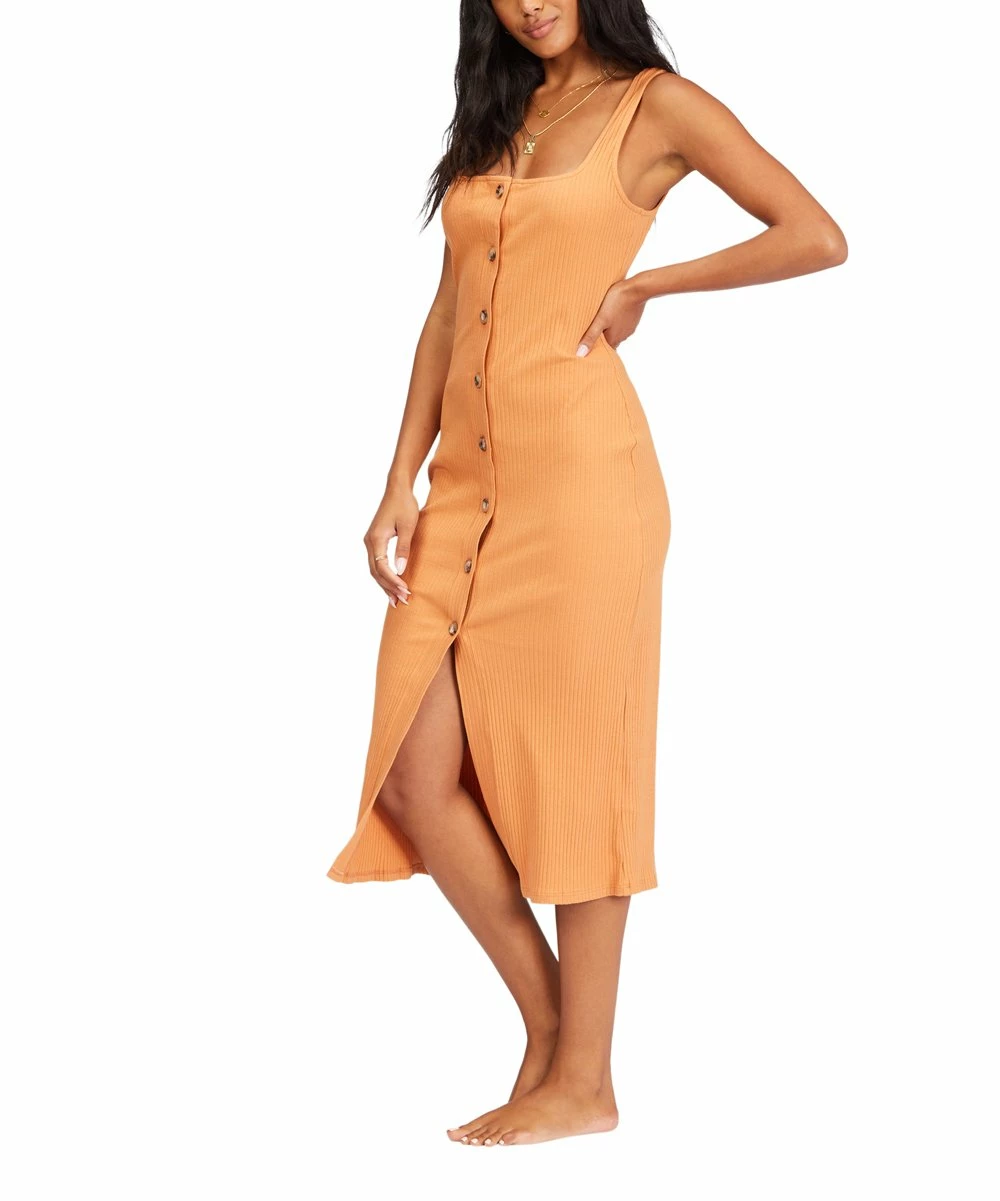 Fitted and flattering, this henley shirt-inspired dress is crafted in soft ribbed cotton with a hint of stretch and designed with a square neckline and horn buttons down the front.