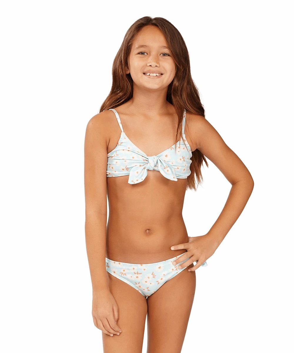 Your sassy swimmer will love the splashy print and fashion-forward design of this must-have bikini featuring a knot-front detail.
