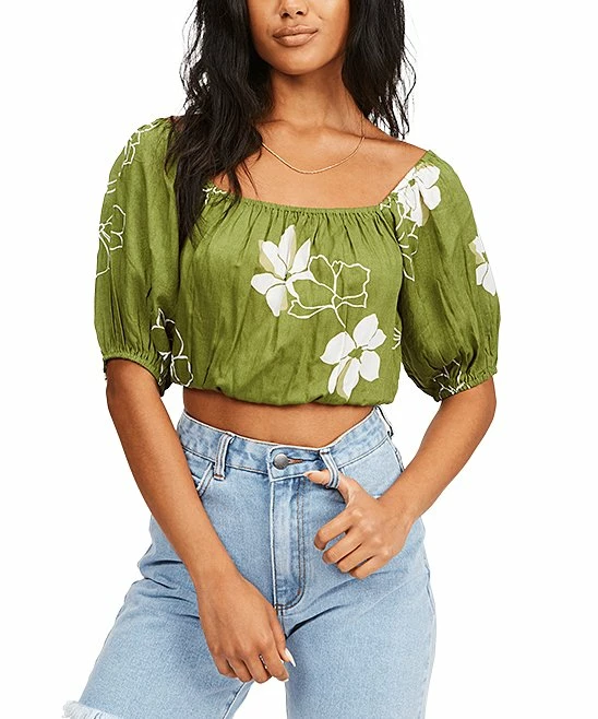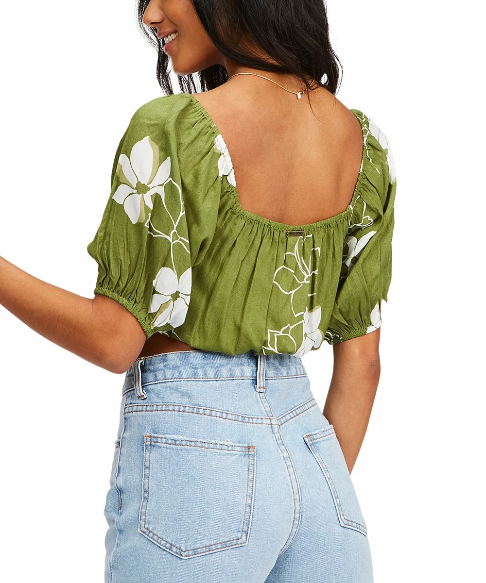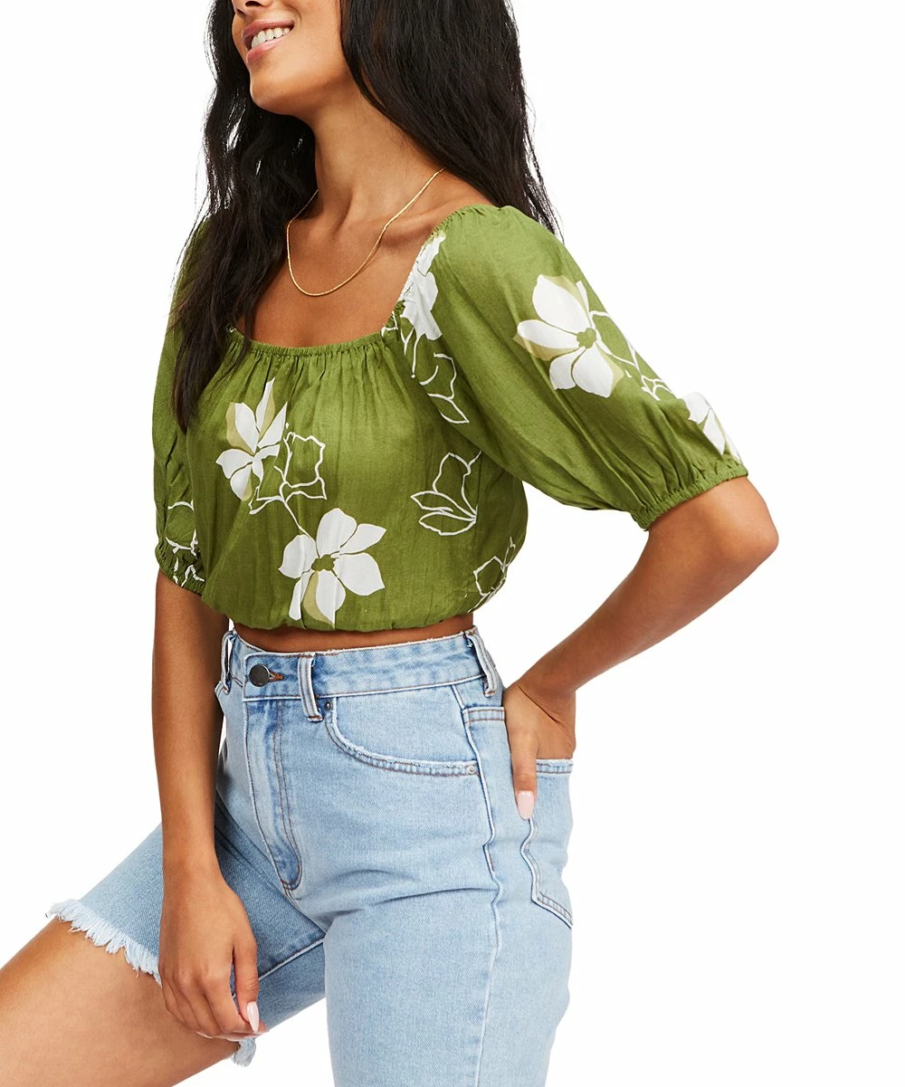 Bring boho flair to your look with this crop puff-sleeve top fashioned with a square neckline.