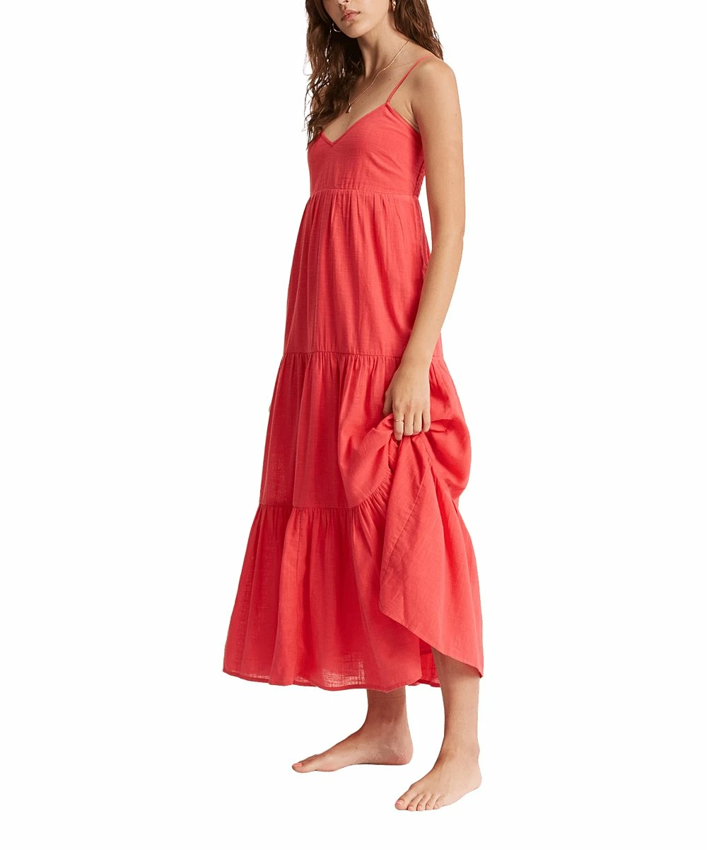 Bring boho vibes to your attire with this tiered-ruffle maxi dress made from cotton. Sleeveless with a v-neckline.