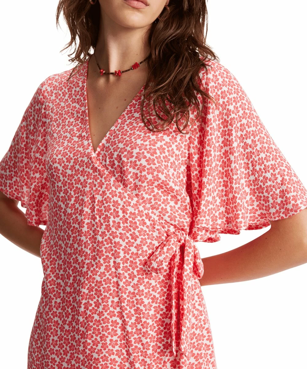 Slip on this wrap dress for a laid-back look. The flattering fit and crinkle fabric keep things comfy and casual.