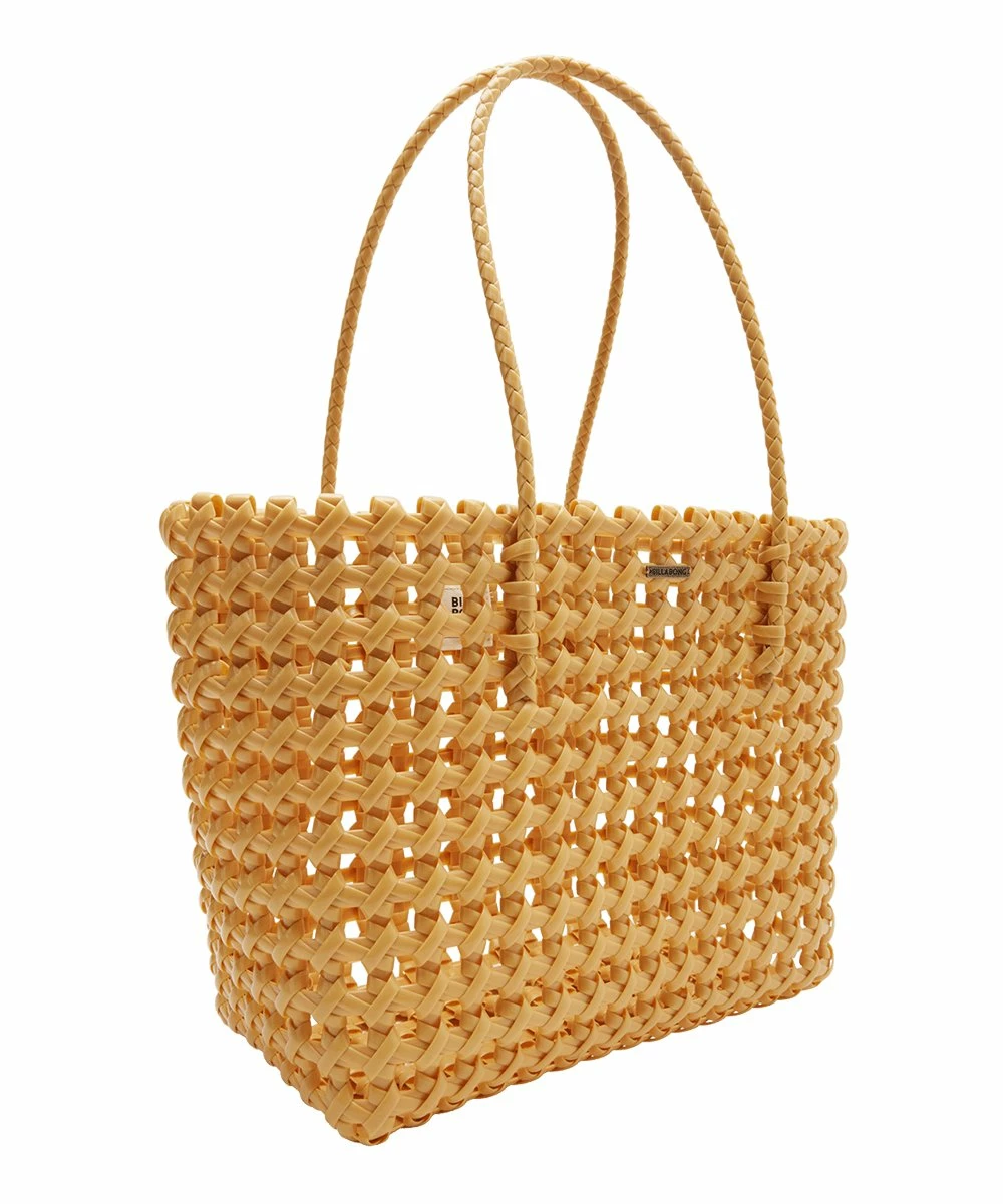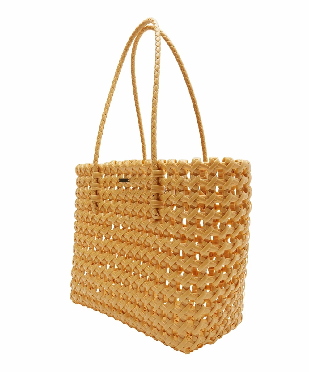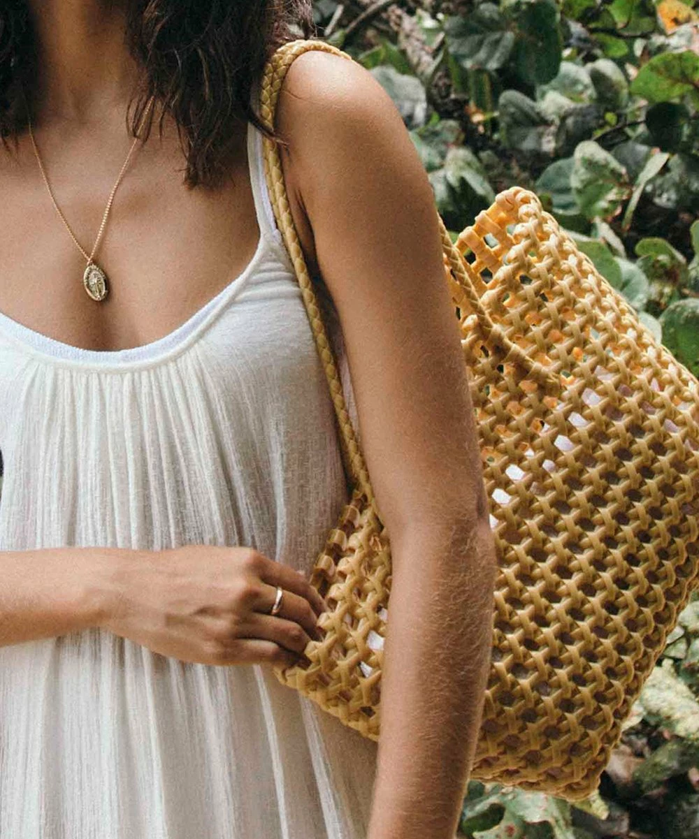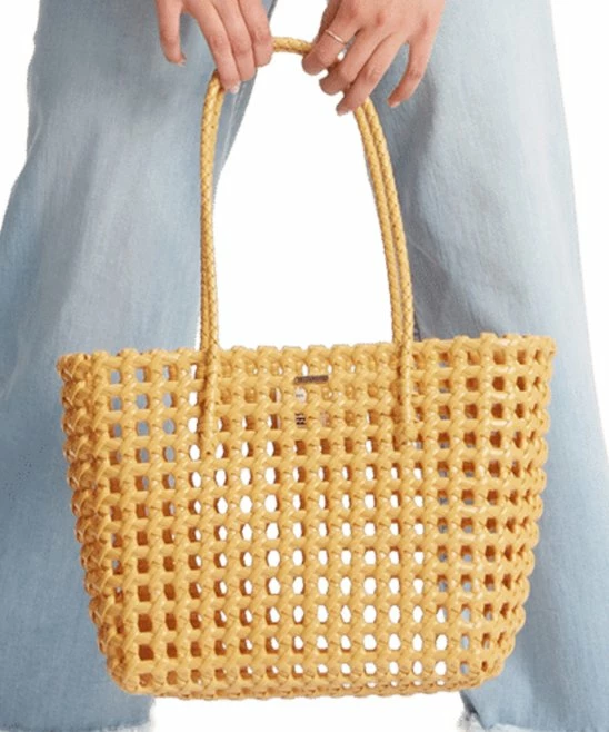 Elevate your travel style when you transport essentials in this woven, weather-resistant tote.