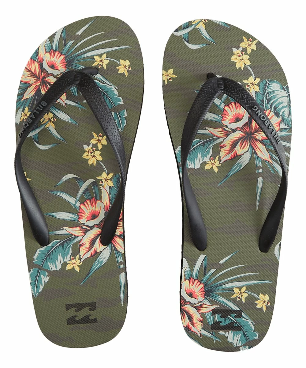 Give his casual collection a refresher, starting with a pair of tropical-inspired flip flops featuring a printed foot bed and textured insole for sure-footed steps.