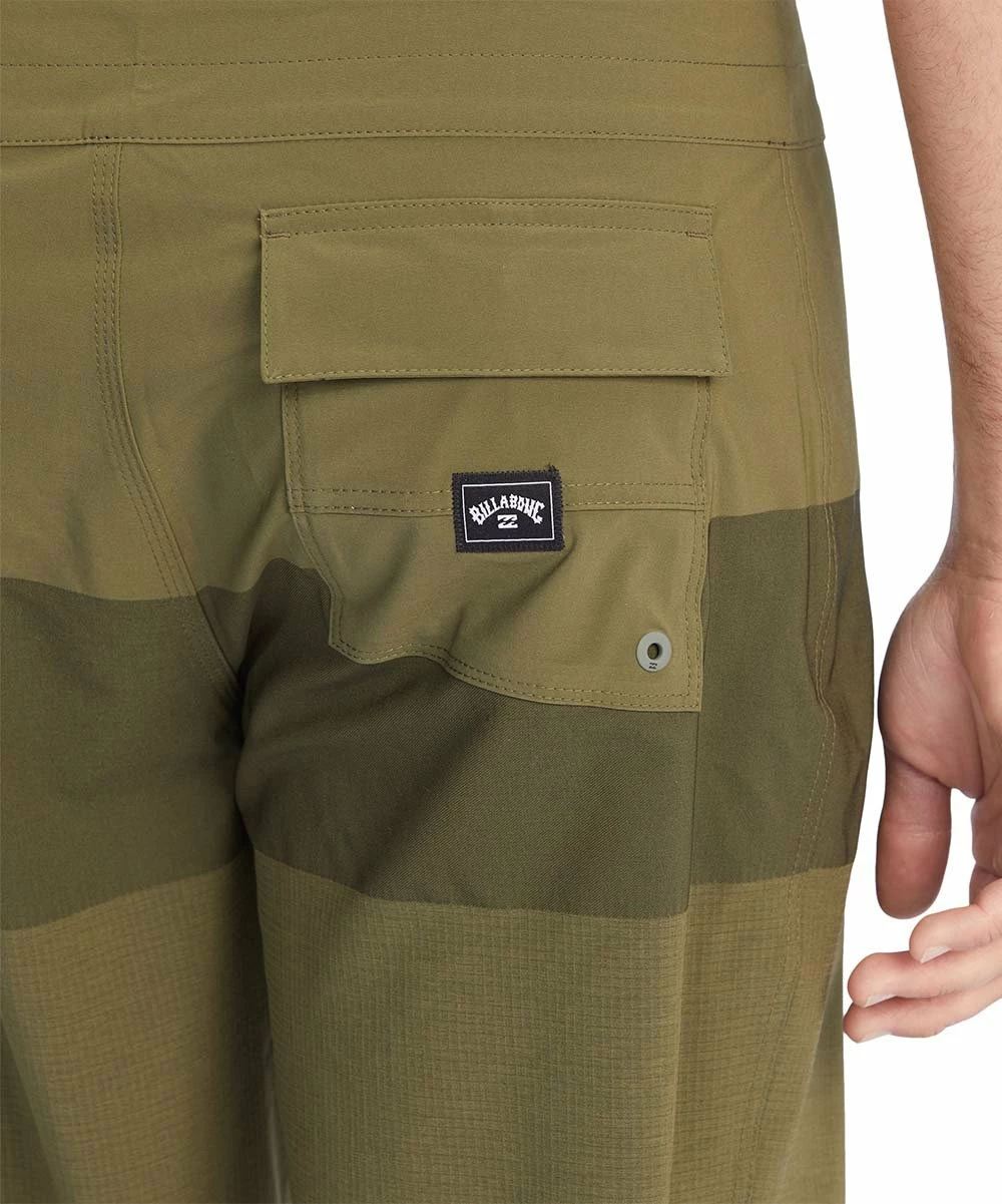 Boardshorts featuring a back pocket and an adjustable drawstring waist.