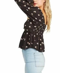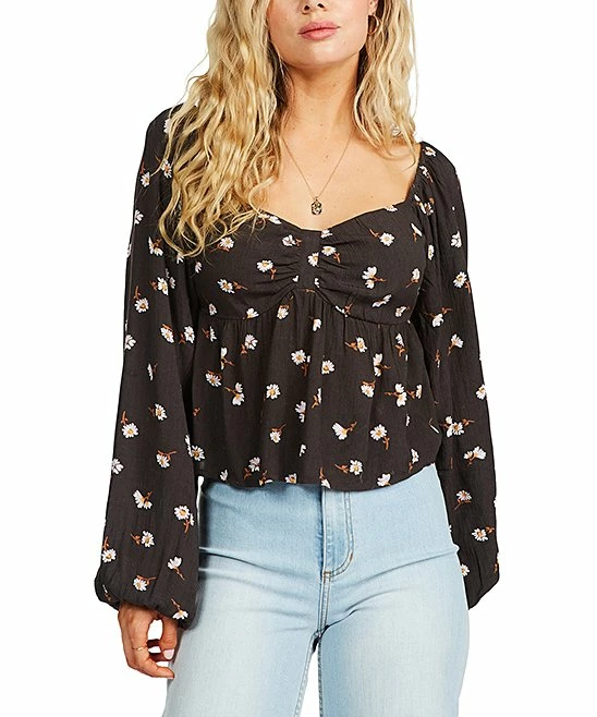 A sweetheart neckline accentuates this peplum top complete with bishop sleeves.