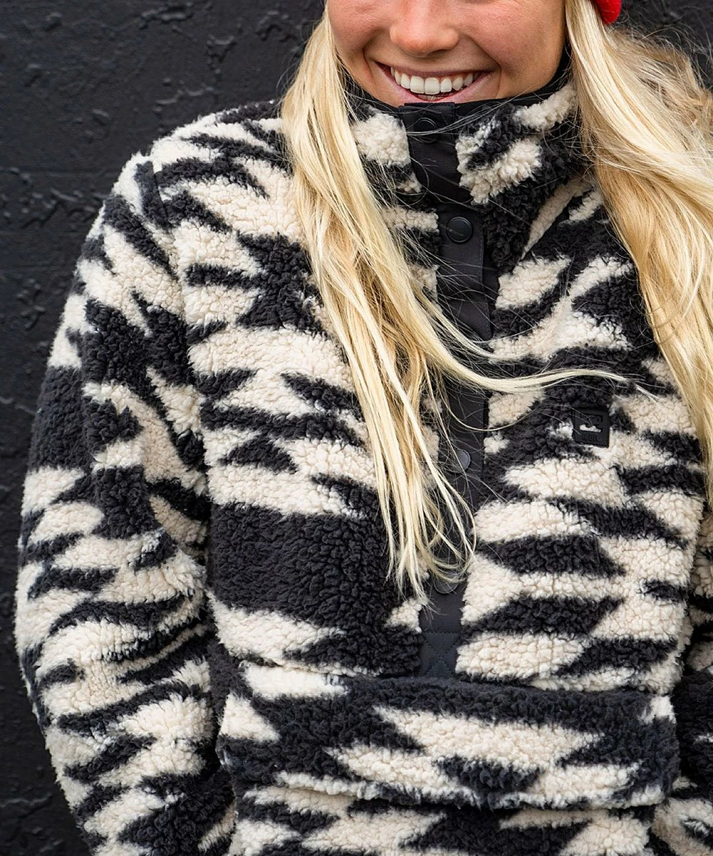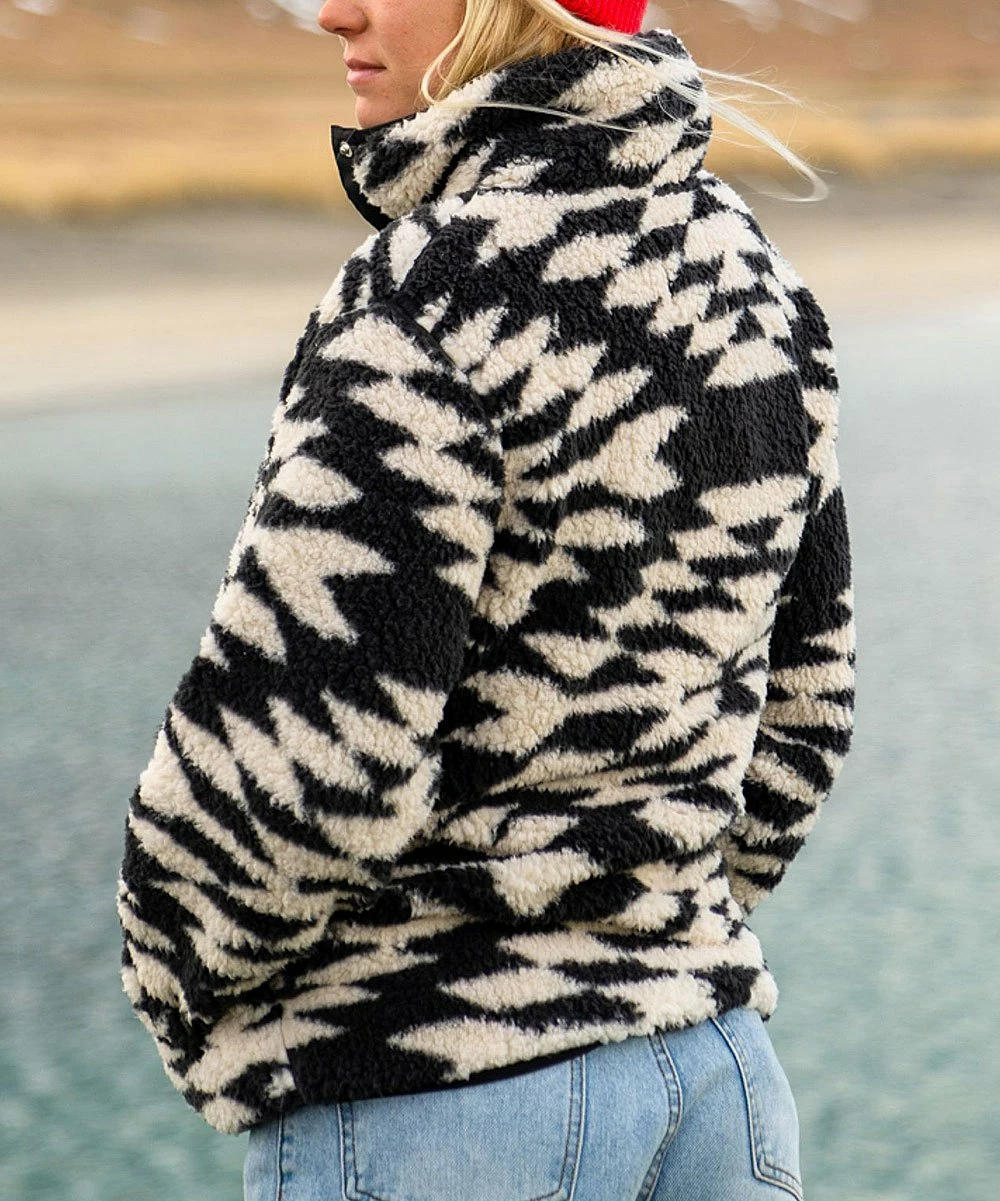Cold weather can’t bring you down in this plush fleece pullover crafted with a bold allover print and a half-button closure. A front flap pocket gives you space to store your essentials or keep your hands cozy.