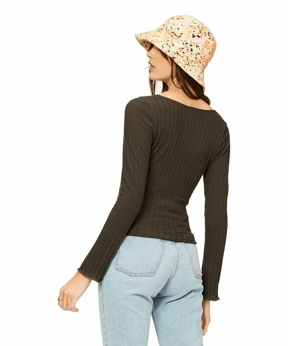Elevate your everyday look with this long-sleeve top designed with a flattering v-neckline and cozy ribbed knit fabric.