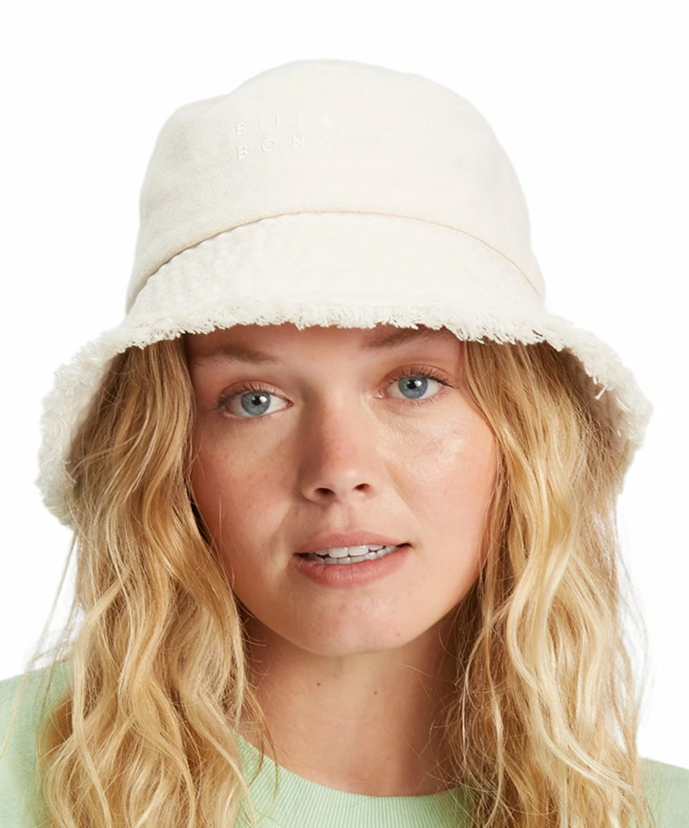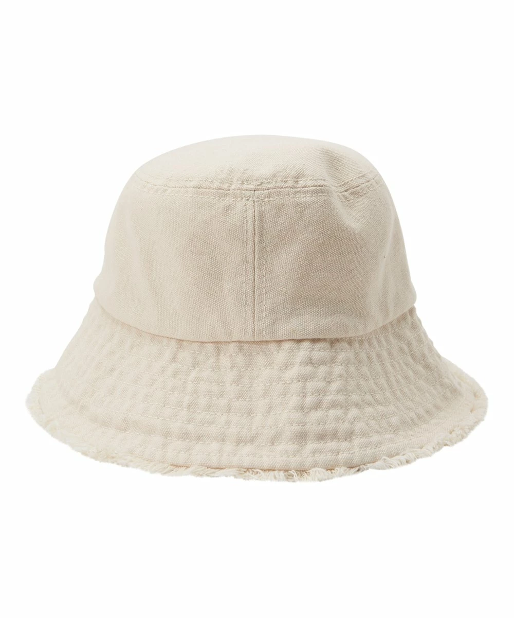 Top off your laid back and sunny looks with this classic bucket hat in a light cotton fabric and versatile neutral hue.