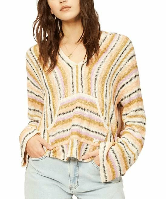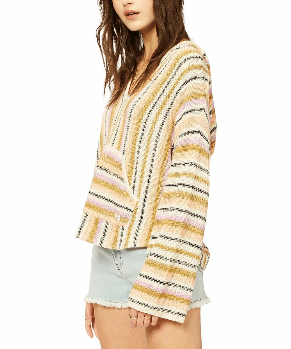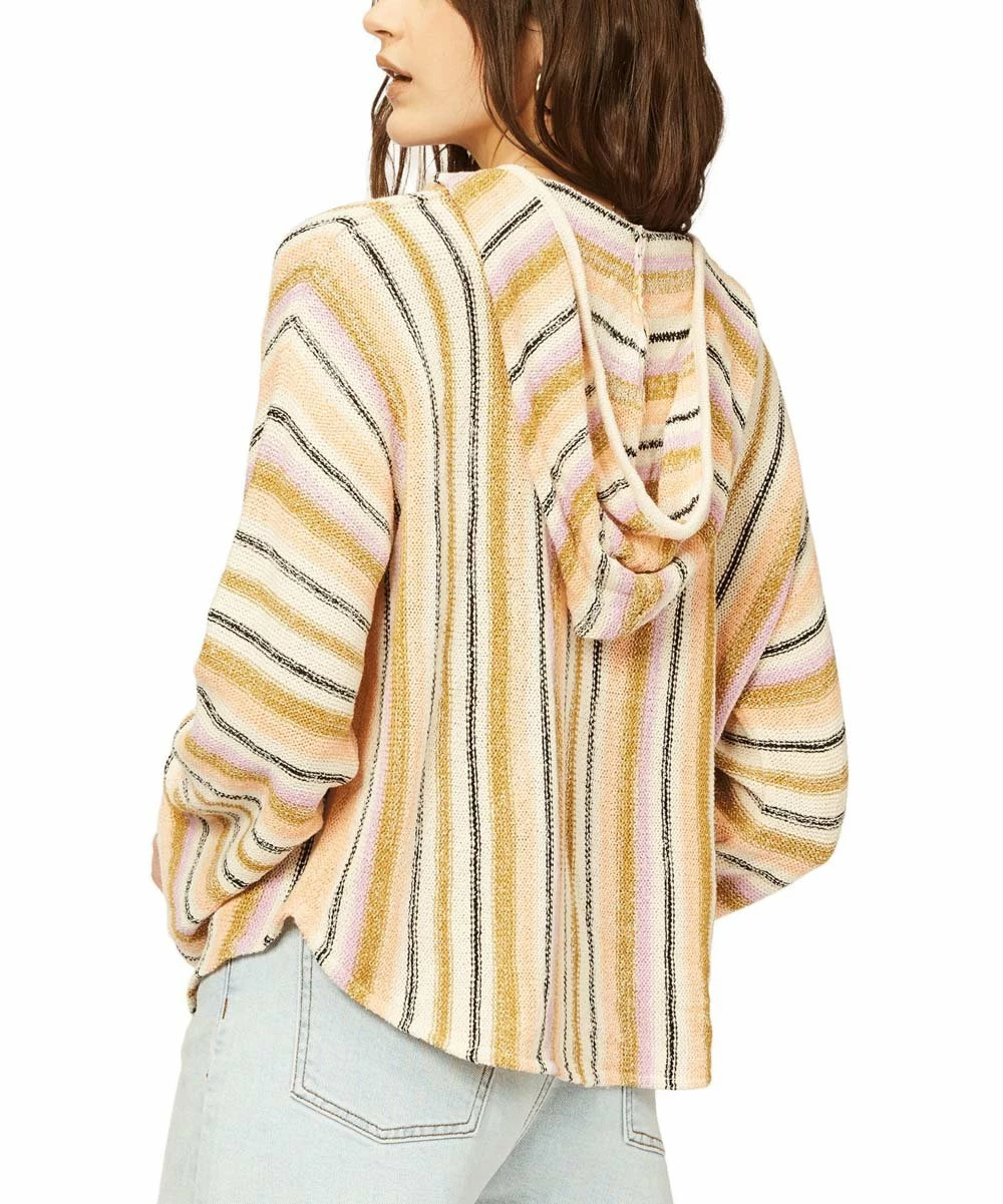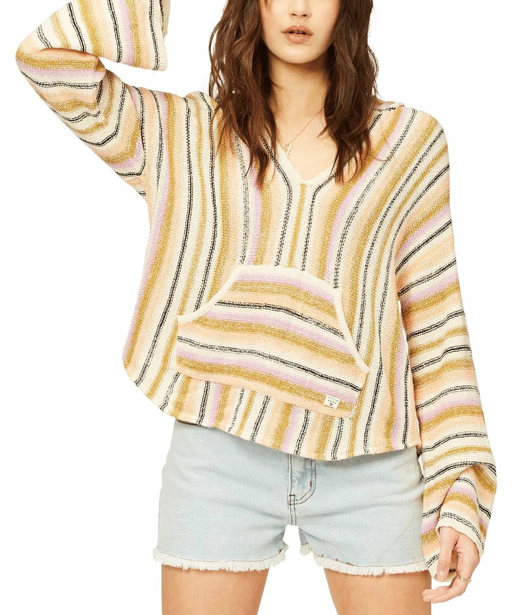 Add a cozy layer to chilly nights with this hooded sweater crafted with playful bell sleeves and an allover stripe print. A hand kangaroo pocket gives you space to store your essentials.