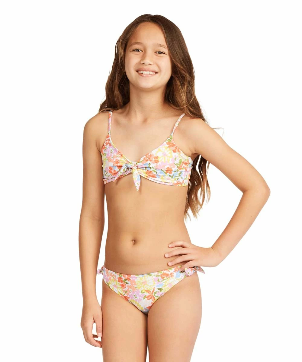 Let your little water-lover enjoy warm days with this fun bikini set that features a cool floral print.