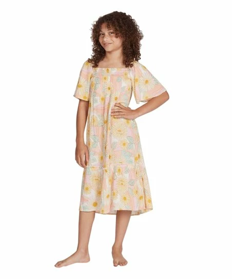 Outfit your little one in this flowy dress featuring a smocked neckline and cool short sleeves.
