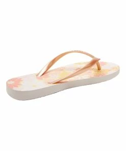 Flip flops made with sponge rubber and a molded thong-style strap.
