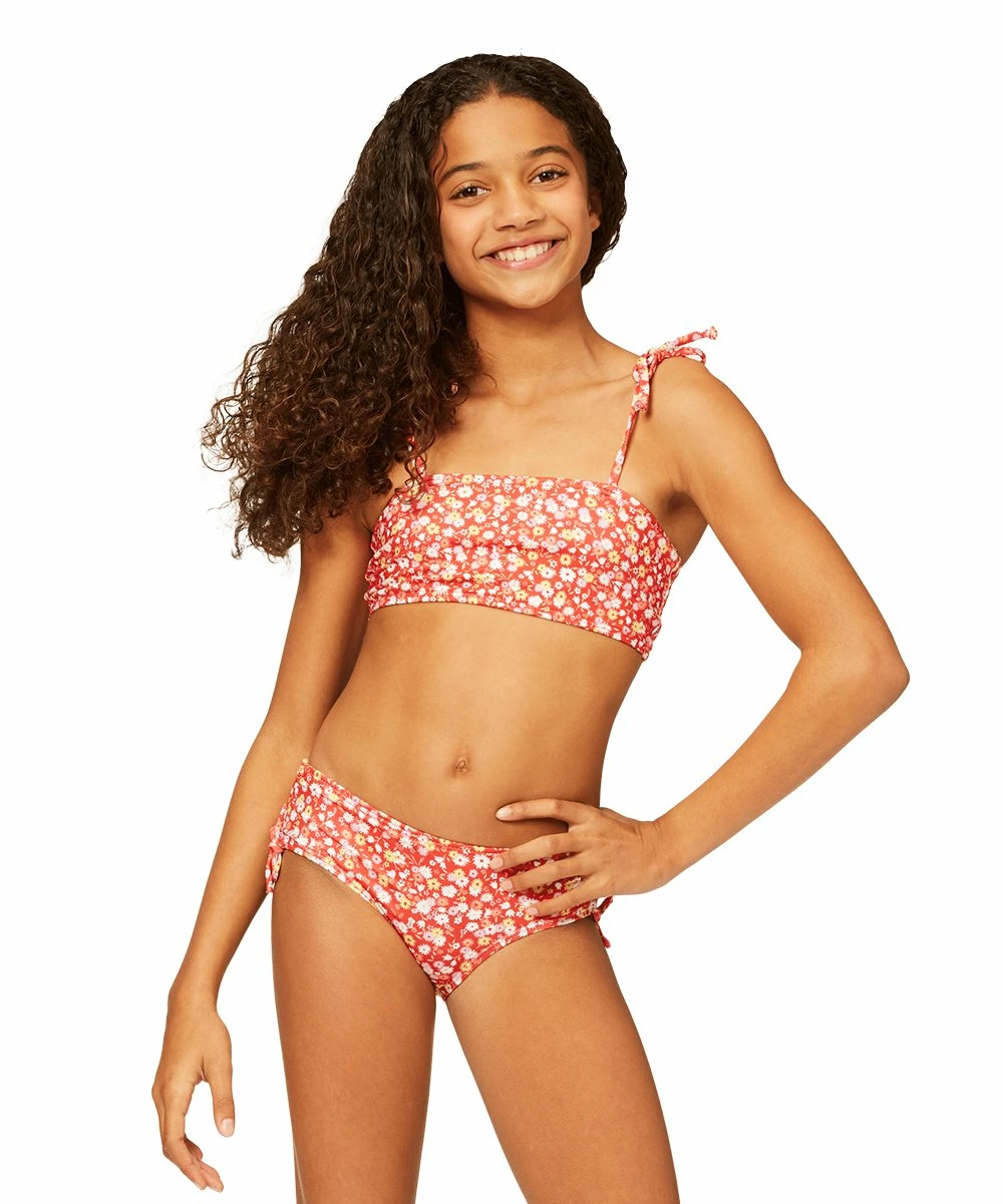 - Includes red floral bikini top and matching bottoms (two pieces total)