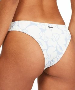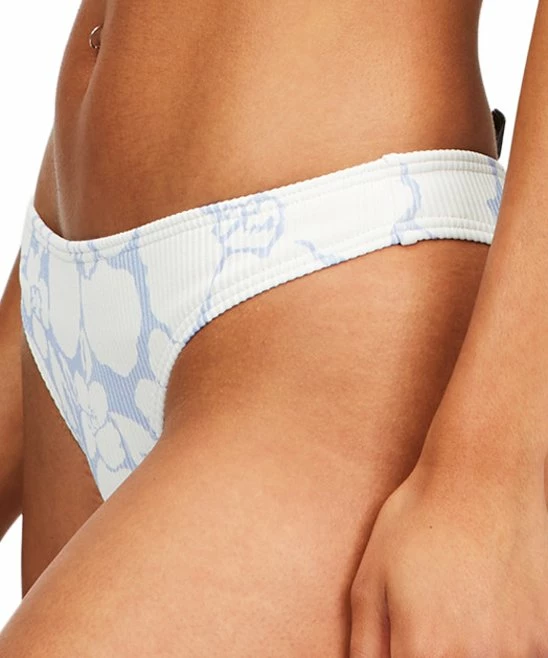 Stroll in style at the beach or pool in these poly-blend, low-rise bikini bottoms that are designed with a rib-knit fabric.