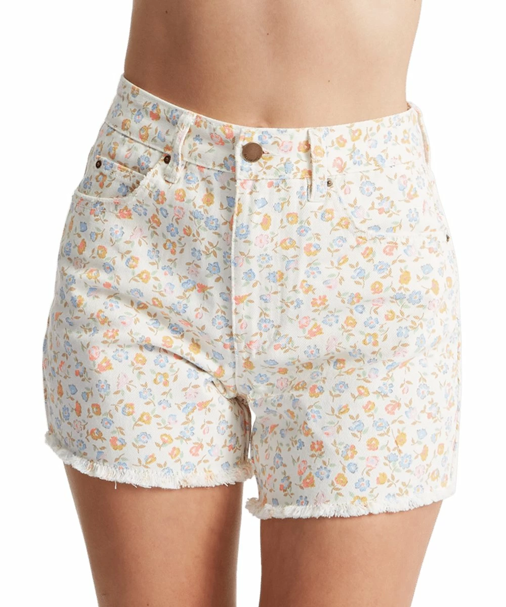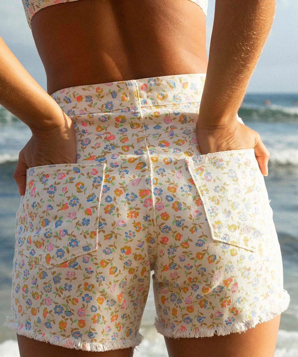 These classic denim shorts get an update with a printed design and raw hemline.