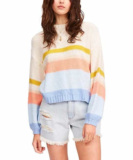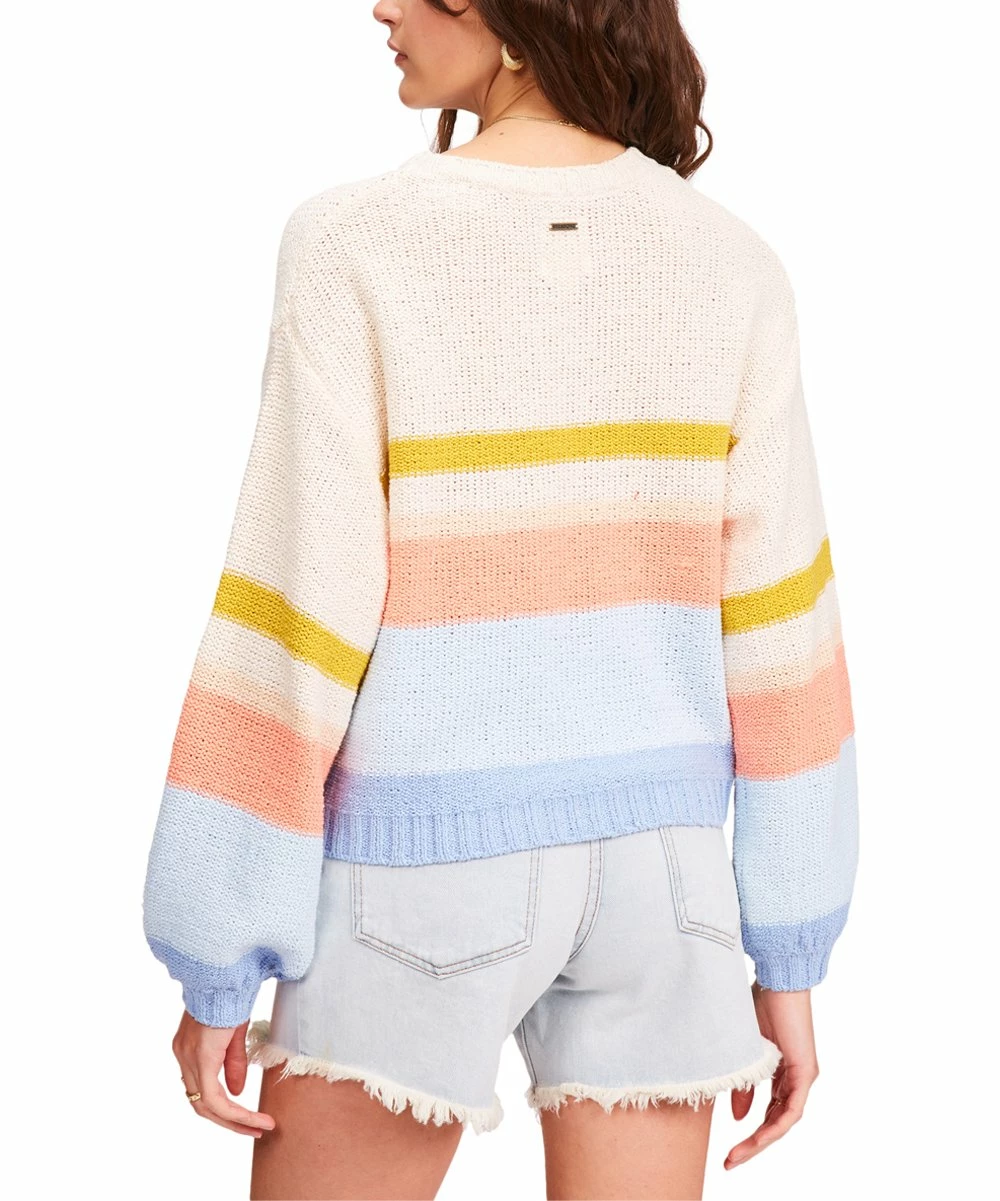 Colorful stripes add a bright flourish to this crewneck sweater that’s crafted from cozy cotton for added comfort.