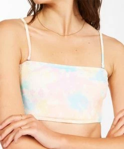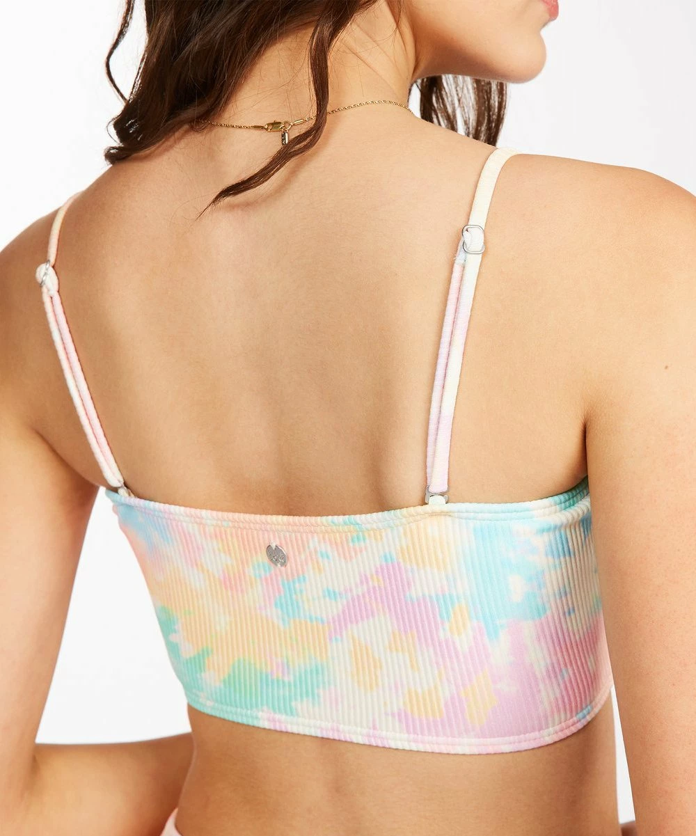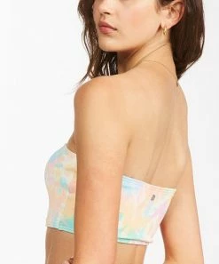 Embrace the comfortable fit and stylish look of this strapless bikini top featuring removable padding and a multicolor print.