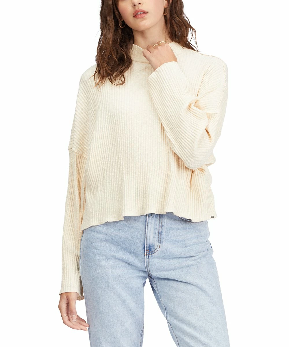 Long-sleeve tee with a versatile neutral hue and stretch-infused fabric.